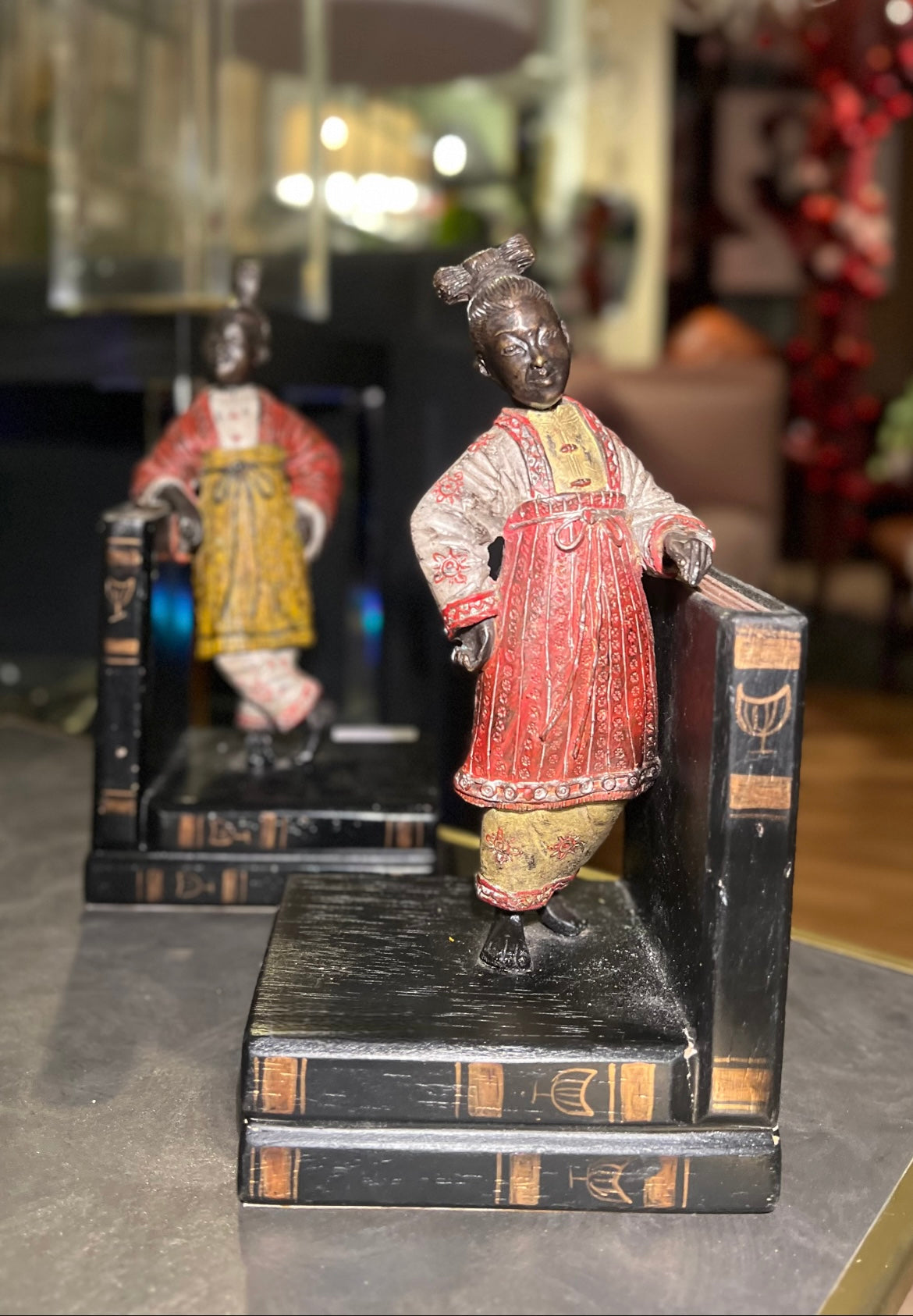 2 Bokstøtter i bronse trolig fra første halvdel av 1900-tallet.