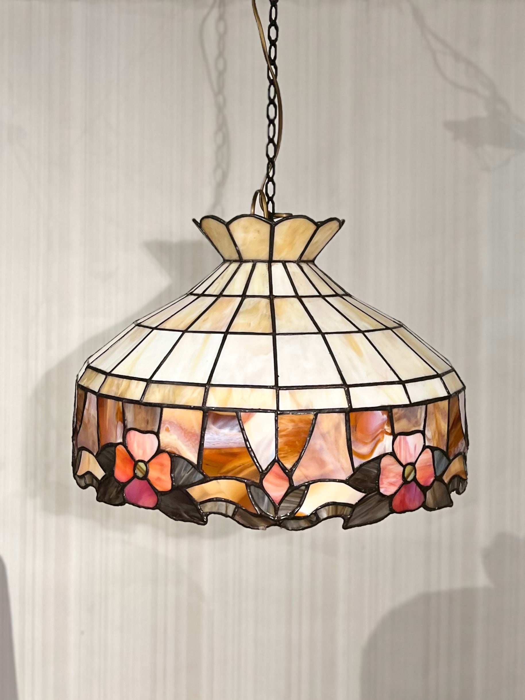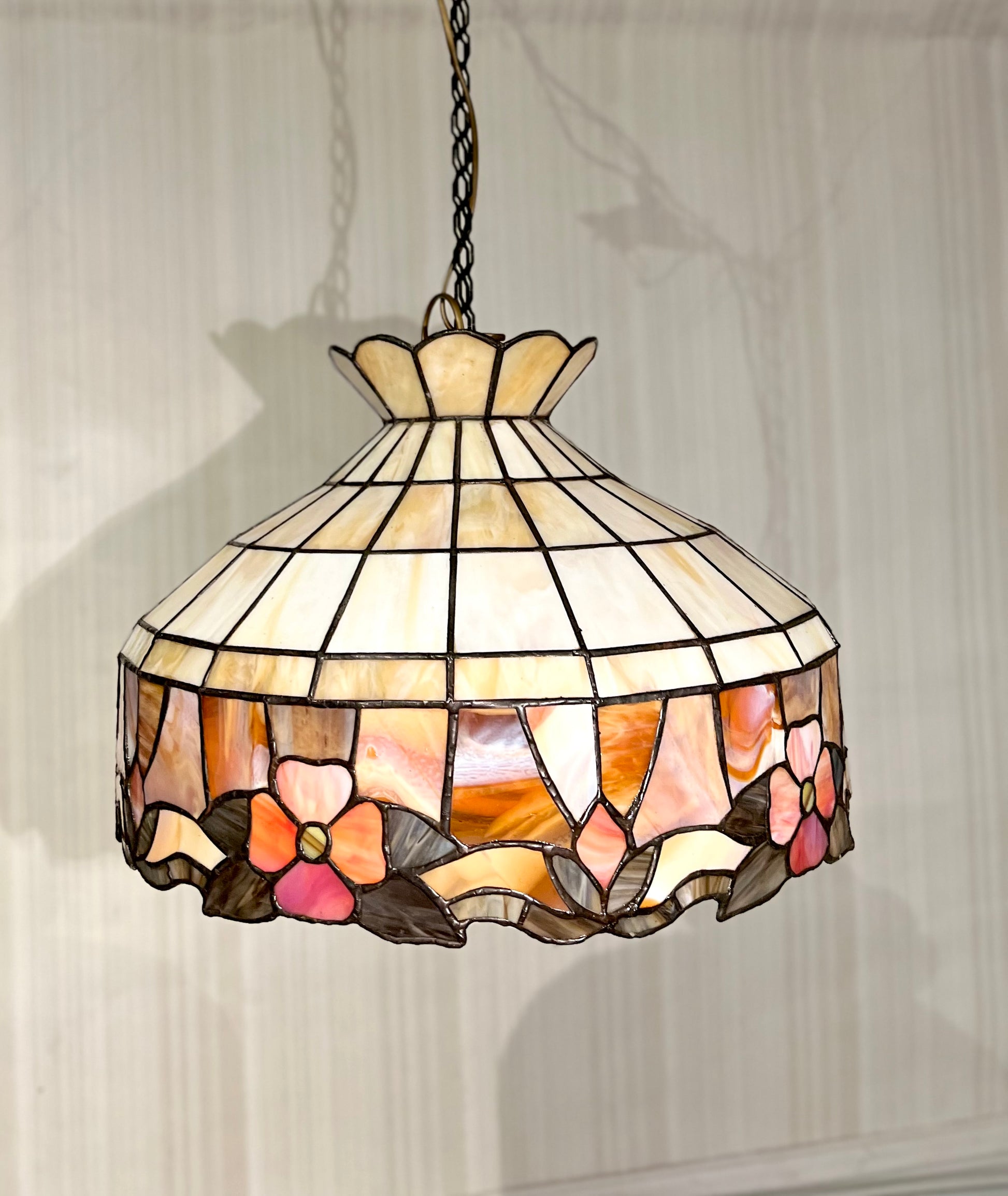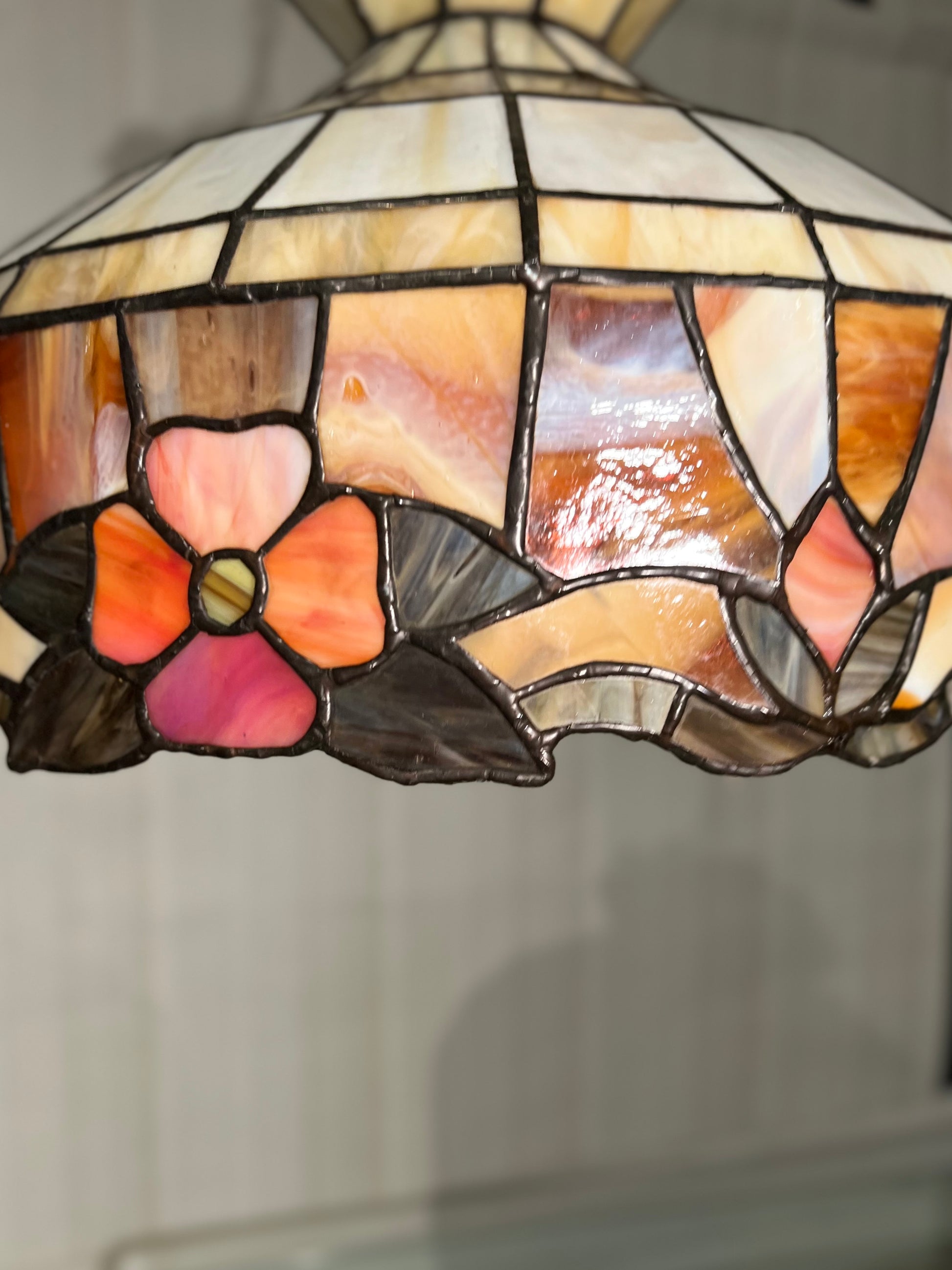 Nydelig Tiffany taklampe med delikate fargenyanser i apricot toner.